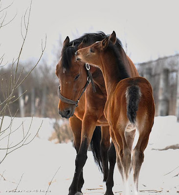 الكثير من الأفراد على مر العصور يعشقون الخيول إنها دائماً رمز للقوة و الأصلة ، ولاسيما الخيول العربية الأصيلة فاليوم سنأخذكم في رحلة إلى عالم الخيول نتعرف عليها وعلى حياتها ونشاهد الكثير من صورها ![]() ![]() الخيول أنواع متعددة ، تتفاوت فيما بينها تفاوت ملحوظ سواء في الشكل أو الحجم أو السرعة و أيضاً القدرة على التحمل فمنها فنجد مثلاً الحصان العربي والحصان الإنجليزي والحصان المهجن الأصيل بين العربي والإنجليزي وهو ذلك النوع الذي نراه في سباق الخيول . ![]() اما عن ألوان الخيول فهي عديدة تتمثل بين الأشقر والأحمر وا لعسلي والأسود والأشهب. و يتغذى الحصان عادة على الحشائش، وأمعائه الغليظة تحورت لهضم الأعلاف إن الاحتياج اليومي الطبيعي من الغذاء له حوالي 1 كلغم (2 باوند) من الغذاء الجاف لكل 50 كلغم (100 باوند) من وزن جسمة إن المشيات المعروفة للحصان أربعة وهي : • المشي (Walk) : وهو المشي العادي. • الخبب (Trot) : وهي نقل القوائم اليمنى معاً تارة واليسرى معاً تارة أخرى. • العدو (Pace) : وهو العدو بانتظام. • العدو السريع (Gallop) : وهو الجري السريع. ![]() ![]() تعيش الأحصنة في مساكن مختلفة ومتنوعة تتراوح من المناطق الاستوائيّة إلى الغابات إلى الحقول والسهول. وبما أن الأحصنة محبوبة من طرف المربين فهي منتشرة في جميع القارات والبلدان. ![]() ![]() ولكن ماهي ميزات الحصان العربي الاصيل ؟ وكيف تتعرف عليه من بين الخيول الأخري ؟ الحصان العربي من أجود وأسرع أنواع الخيول ، وقد تم تهجينه في أوروبا وبكثرة و يمتاز الحصان العربي بالجمال الفائق الذي يميزه عن بقية الخيول في العالم. فمن الصفات الجميلة في الحصان العربي انه يمتاز بوجه صغير جميل وعينين واسعتين واذنين صغيرتين وتقعر خفيف في الوجه مما يضفي عليه نوع من الجمال الوحشي في بعض الأحيان وكذلك يتميز الحصان العربي بكبر حجم الصدر الذي ان دل علي شيء فانما يدل علي كبر حجم رئة الحصان العربي والتي تؤهله للقيام بالأعمال الشاقة وتفرده في سباقات الخيل للمسافات الطويلة (الماراثون). ويتميز أيضا الحصان العربي بوجود تقعر خفيف في منطقة الظهر والتي تعتبر من محاسن الحصان العربي. وتتميز ارجل الحصان العربي بالقوة والمتانة وهي التي تؤهله للقيام باعمال شاقة سواء في الحرب أو السباق. ![]() كما إنه يكون حافره مقعر وان يكن البياض الذي في ساقه لا يتعدى الركبة وان تكون اذناه منتصبتان ظهره مقعرة، واهم شي ان لا تكون ضلوعه بارزة ويتميز الخيل العربي عن غيره بان منبت الشعر عند ذيله قصير و الذيل مبتعد عن الفخدين في قوائم الخيل العربي الخلفيه منطقة بارزه تسمى الابرة و يجبان يكون متوازية مع مؤخرة الخيل. ![]() ![]() تقول الأساطير الجاهلية أن الخيل فرّت إلى القفار عقب انهيار سد مأرب ولم تلبث أن توحشت، فخرج خمسة من الأعراب في يوم من الأيام فشاهدوا خمسًا من كرائمها في بلاد نجد. ظل الأعراب الخمسة يترددون على أماكن ورود الماء، واحتالوا لصيدها بأن نصبوا لها كميناً من الفخاخ الخشبية وأبقوها في تلك الفخاخ حتى أخذ منها الجوع والعطش كلَّ مأخذ. وحتى تألفهم هذه الجياد ، صار الرجال الخمسة يترددون عليها يوميًا ويقتربون منها حتى تعودت عليهم، ![]() فركبوها متجهين نحو خيامهم، إلا أن ما معهم من طعام نفد وأنهكهم الجوع. واتفقوا على أن يتسابقوا باتجاه مضاربهم ويذبحوا الفرس التي تتأخر. وتسابقوا، وتأخرت واحدة من الخمس إلا أن راكبها أبى إلا أن يعاد السباق. وتأخرت فرس أخرى فرفض الثاني وطلب إعادة السباق، وتأخرت الثالثة فالرابعة ثم الخامسة. وفي اليوم الخامس ظهر لهم قطيع من الظباء فصاد كل منهم واحدة وأكلها وسلمت الأفراس الخمس و قد تسأل عن كيفية ولادة الأحصنة و مراحل نموها داخل رحم إمها ونعرض عليكم في تقريرنا هذا صور للخيل من بداية كونه جنين حتي تمام ولادته