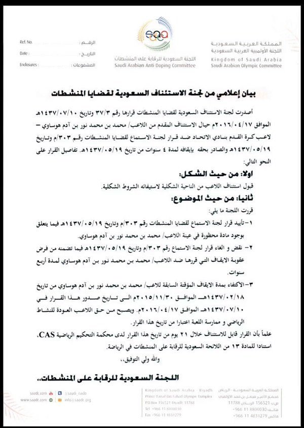 فقط تم نقض و إلغاء القرار بإيقافه لمدة 4 سنوات والاكتفاء بمدة الإيقاف المؤقته ليته يقرر الاعتزال احسن له |
