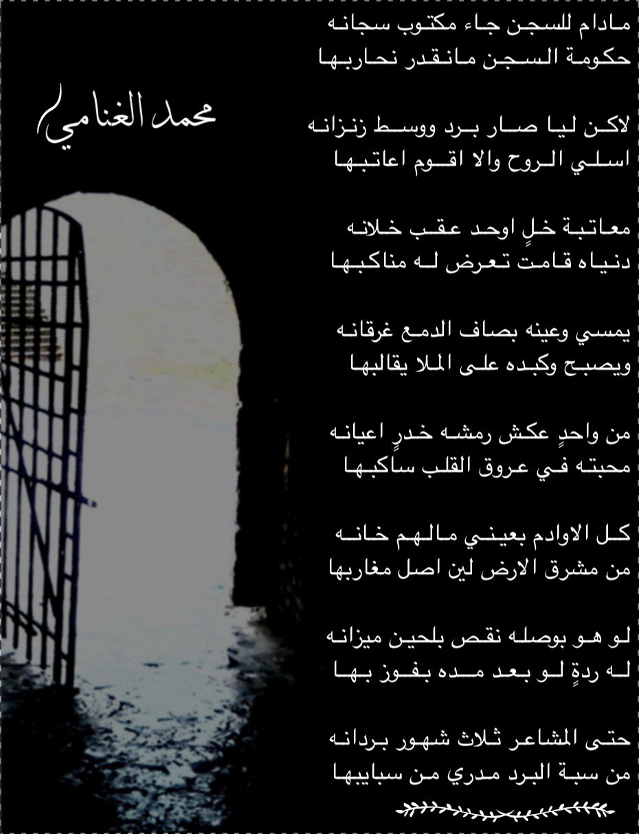 شاعرة نجـــد طولتِ غياب غاليتي عسى أن يكون من أمر غيابك خيرا / الناقـــــد - رمح الغنايم - سجين الرواسي - حمد الحربي - غشَّـــــآم [ بوح شاعر ] المكان يفتقد لحروفكم وإبداعكم ولِحضوركم الرآقي / مرّت سنون بالوصال وبالهنا فكأنها من قصرها أيــــــــام ثم انثنت أيام هـجر بعدها فكأنها من طولها أعوام ثم انقضت تلك السنون وأهلها فكأنها وكأنــــهم أحــــــــلامُ |
