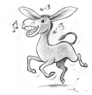 ففي كل مرة ينسكب فيها الرمل من المعول يقوم الحمار بعمل شيء مدهش.