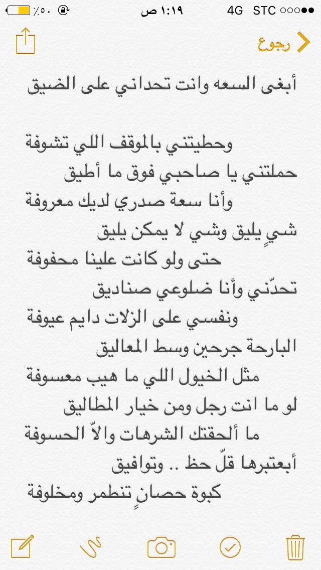 ارحبي يالجوهره والله يحفظك ــــــــــــــــــــــــــــــــــــــــــــــــــ ـــــــــــــــــــــــــــــــــــــــــــ وين انت جيت ورحت من دون جابه=جيتك وانكافتك قل وش سببها ارحب تراحيب المطر من سحابه=يامن له امحيا كما البدر وابها بك رحب هجوس الشعر بالانابه=عن خمس احاسيسٍ غرامك جذبها بالصدر لك منزل وسيع ورحابه=وقبة ضيافه لك فوادي نصبها اللي هذاك اتشوته شوت طابه=لعبتك به ما غيرك احدٍ لعبها بقول العراقيين نفعتك ياااابه=مع ماجرا لي ما تعادل تعبها |